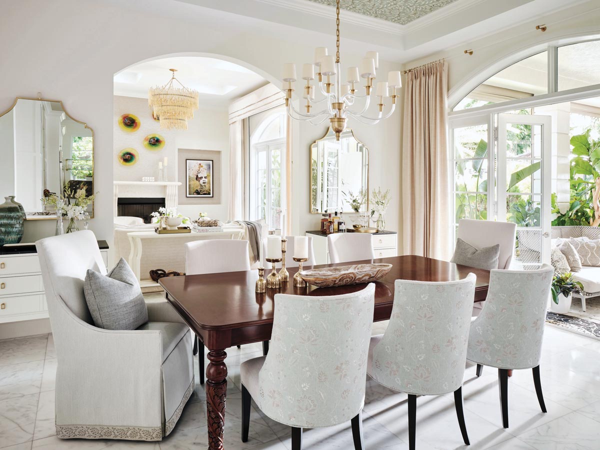 Seeking a superior quality of life and a location from which to lead operations for their charitable scholarship program, a Jamaican couple from Texas landed on Pinecrest, the south Miami-Dade village known for its tree-lined streets and family-centric living. There, they found a 7,620-square-foot house that checked all their boxes, and before they had even closed on the property, they were already calling on interior designer Maritza Capiro and her team to lead the remodeling effort.